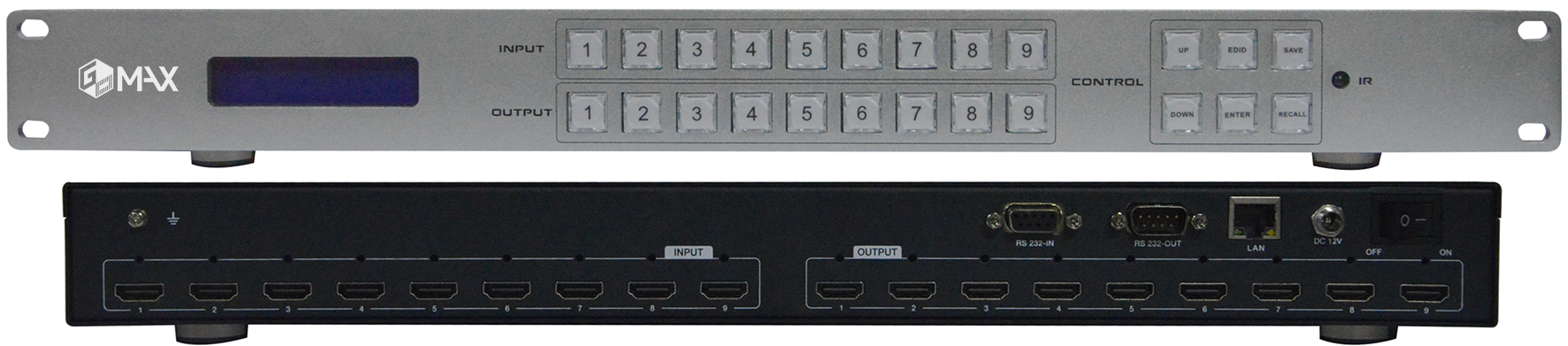 2.支持9路HDMI輸入,9路HDMI輸出,輸入輸出均支持HDMI1.4a協議,分辨率可達4K@30HZ、1080@120HZ;